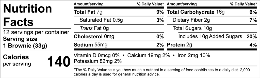 PRODUCT DESCRIPTION: Treat yourself to a Nutritious & Delicious Chocolate Brownies! Packed full of rich, fudgy chocolate flavor that your tastebuds will love! Each scrumptious brownie is loaded with 630 mg of Omega 3's, 2 grams of fiber, and 2 grams of protein. You get 12 brownies in each package. Enjoy them as an afternoon snack, dessert, or midnight treat.